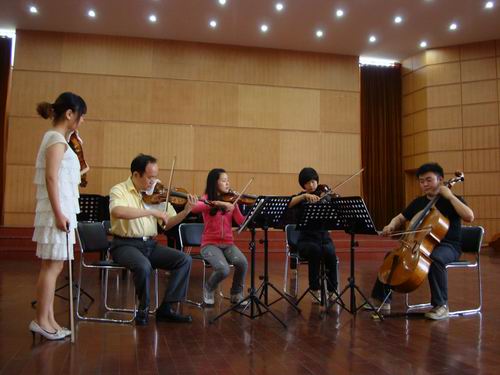 2010年6月7日,我院音乐系室内乐团在经过多次的返场谢幕后结束了他们全国艺术院校巡演的第三站武汉音乐学院。他们此行由我院赵方副院长亲自带队。室内乐团到达武汉的当天受到了武汉音乐学院的院长彭志敏教授以及管弦系师生的热烈欢迎。在音乐会上他们以精湛纯熟的技艺、专注饱满的热情演绎了肖斯塔科维奇和布拉姆斯的弦乐四重奏和钢琴弦乐五重奏。为武汉音乐学院的师生献上了高水准的视听盛宴。