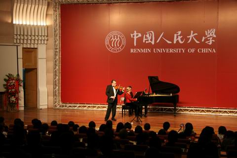 逸夫音乐厅座无虚席。来自中国和法国的听众聆听了一场高水平的《中法文化之春》音乐会。演奏者是法国巴黎音乐学院的小提琴大师安东·古拉尔和钢琴大师杰妮耶芙·玛蒂妮。二位大师是应探花av