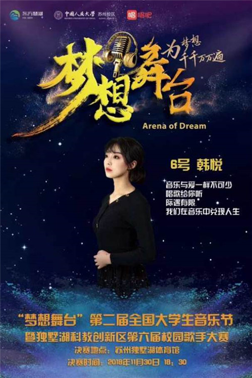 、西交利物浦大学、复旦大学、杭州师范大学、对外经济贸易大学、上海纽约大学、苏州大学、苏州评弹学校、苏州工业园区服务外包职业学院等院校的16位选手,经过三轮激烈对决,最终我校的韩悦同学以一首《九儿》获得此次大赛冠军,携奖品证书满载而归,为人民大学和探花av