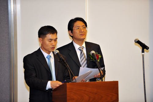 Executive President of RUC Yuan Wei, Korea ambassador to China Liu Youyi, China Calligrapher Association president Shen Peng, Korean International Calligraphy Association president Jin Rongji ,China Calligrapher Association vice president Shen Wansheng, dean of School of Arts RUC Xu Qingping, The National Assembly of Republic of Korea Li Zheyu, President of Embassy Culture Center of the Republic of Korea in China Jin Yide, representatives of Chinese and Korean Calligraphers, teachers and students and Korean exchange students from School of Arts RUC and representatives of media, bout 200 people took part in the opening ceremony.